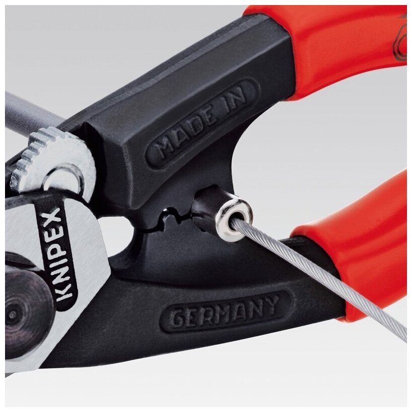 Тросорез KNIPEX компактный, 190 мм, обжим гильз на боуденовские тросы, обливные ручки KN-9561190