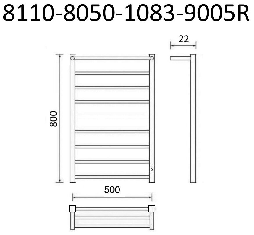 Полотенцесушитель В81/10 Р80*50 профильный (СНШ, Черный RAL 9005 (мат), Под скр.монтаж; ferrum Пр.)