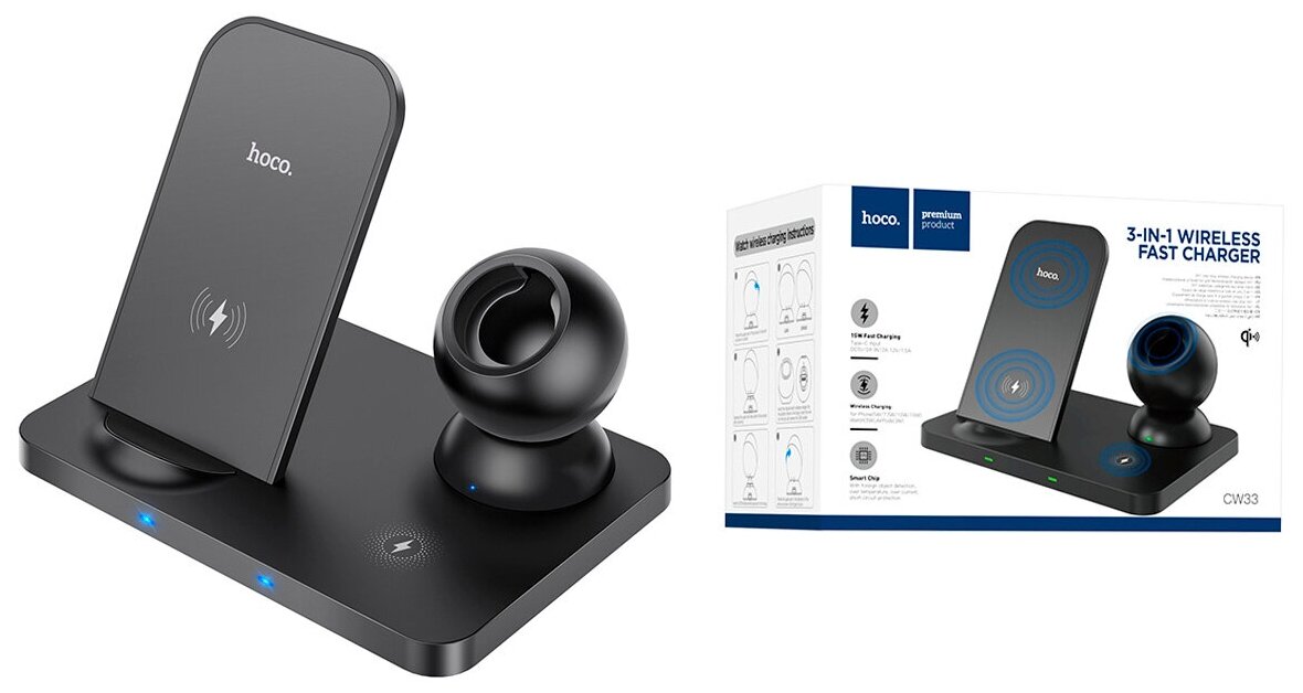 Беспроводное зарядное устройство, CW33, HOCO, Wisdom 3-in-1, черный
