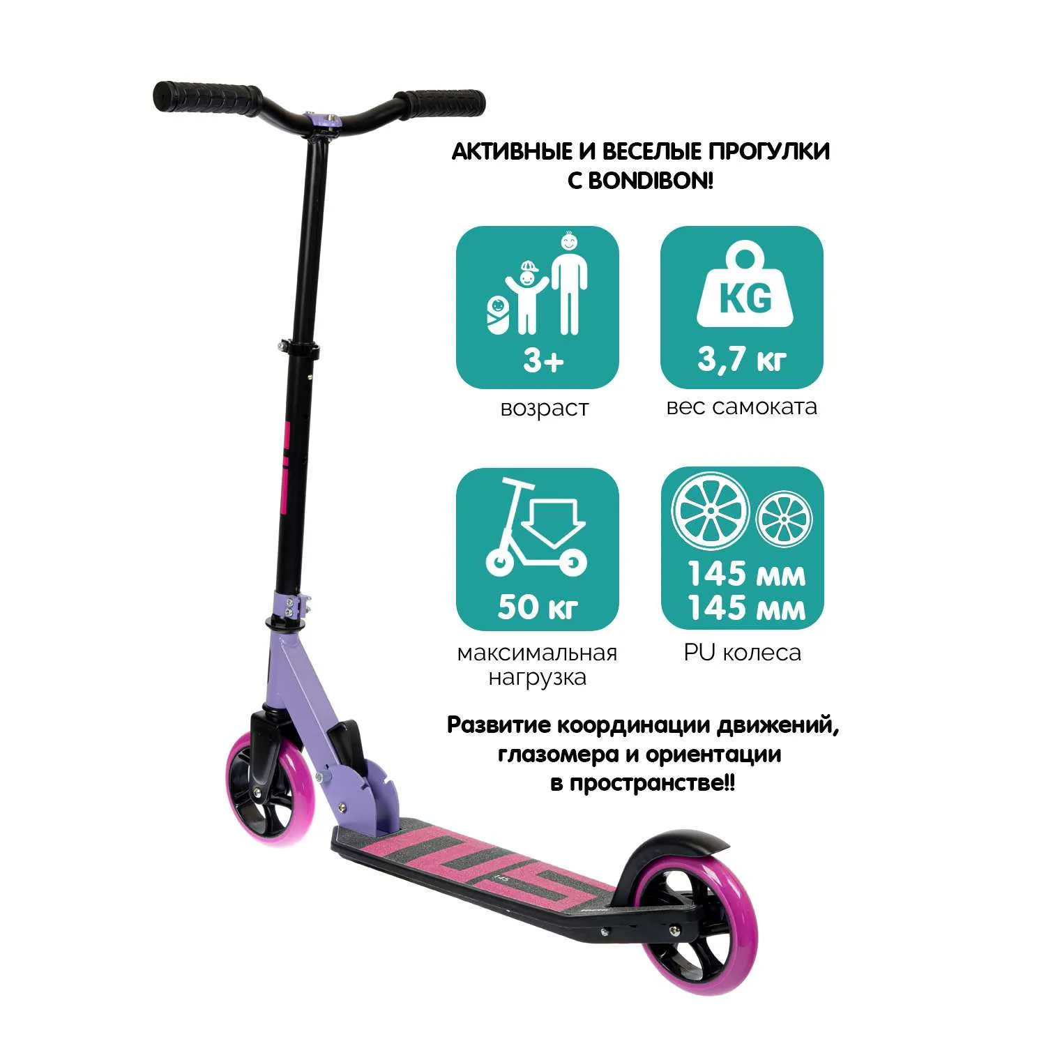 Самокат детский BONDIBON NIMBUS сталь+пластик, складной, колеса PU 145145мм, фиолетовый