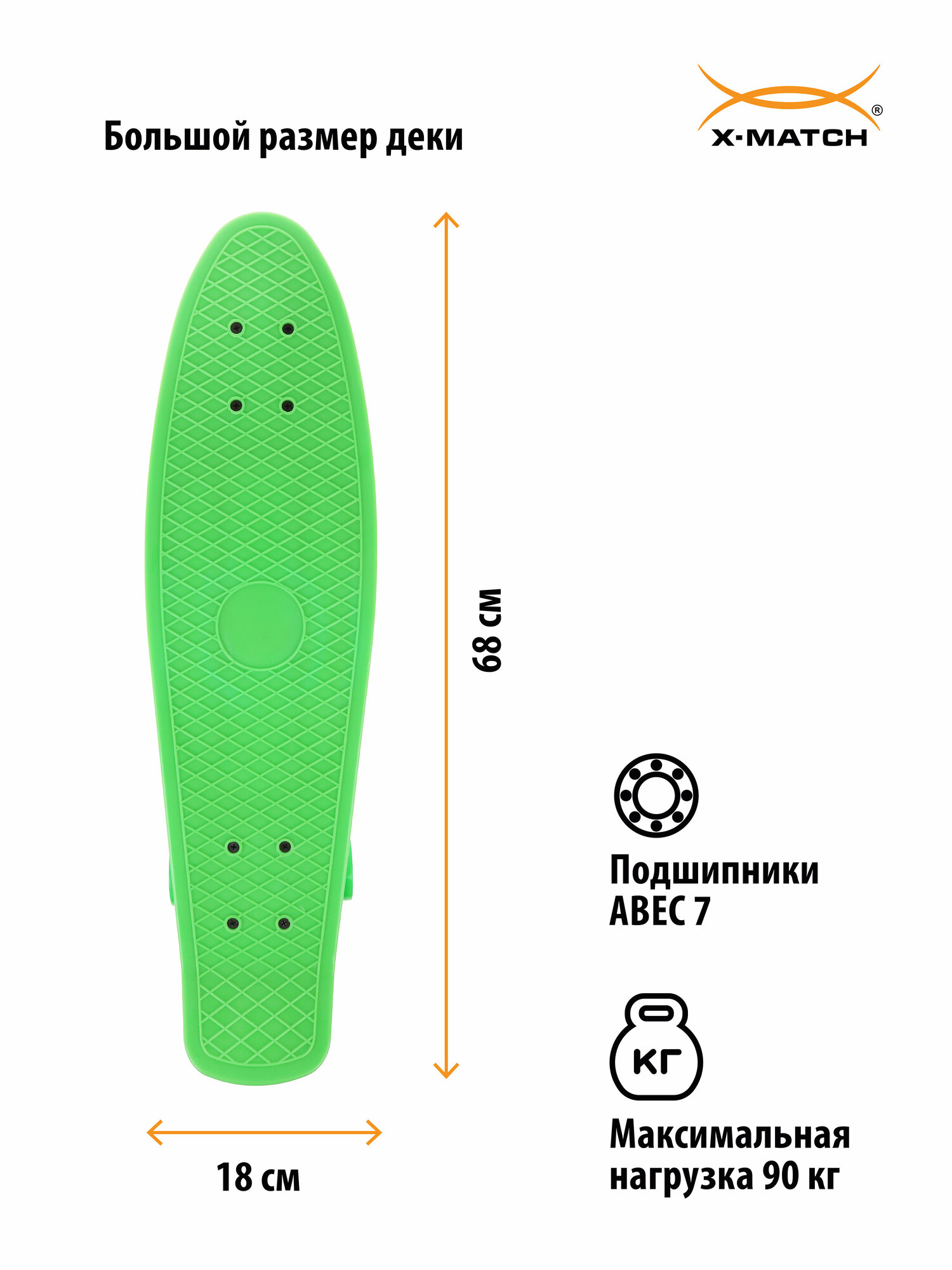 Купить Скейтборд X-Match (пенниборд) пластик 65x18 см, PU колеса, алюминиевое крепление, зелёный X-Match 649103