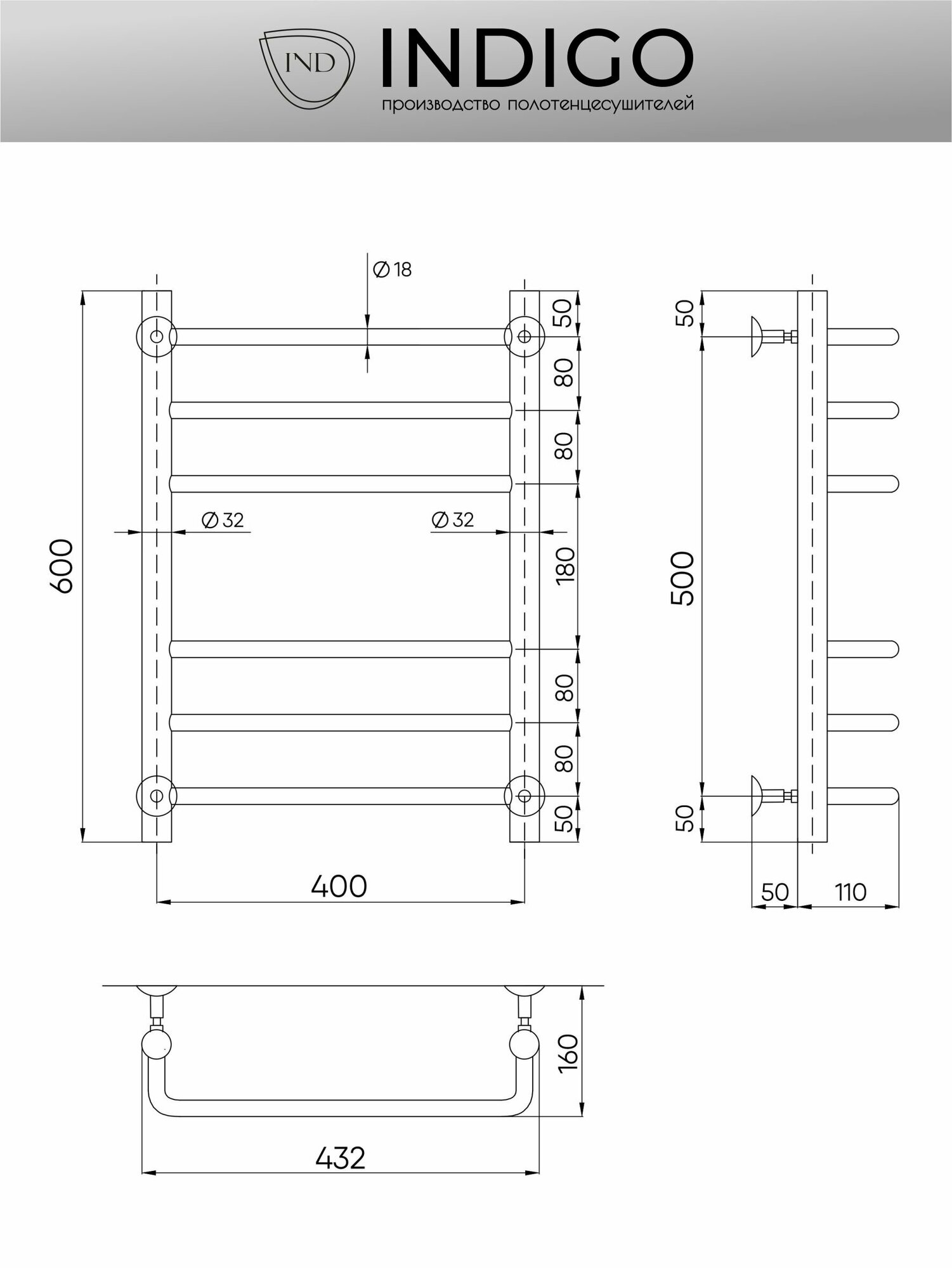 Indigo Водяной полотенцесушитель INDIGO LBCW60-40BR без полочки, черный интересное: