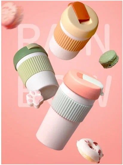 Термокружка Радуга Xiaomi Kiss Kiss Fish Rainbow(0.49л), мятно-розовая
