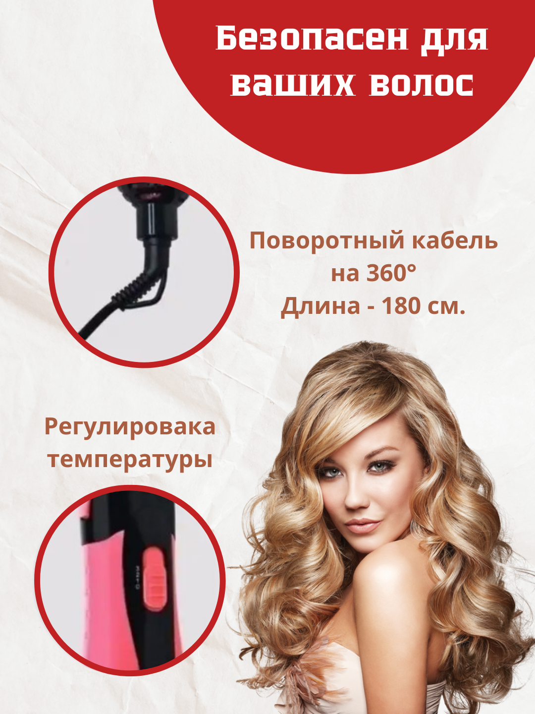 | Особенности | вращение шнура / зубчики на насадке для выпрямления / петля для подвешивания |