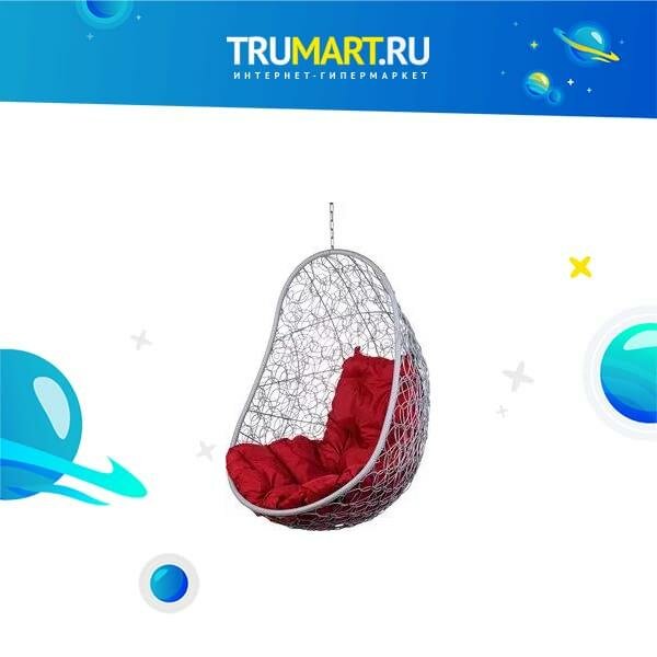 Кресло подвесное Bigarden "Easy", белое, без стойки, красная подушка