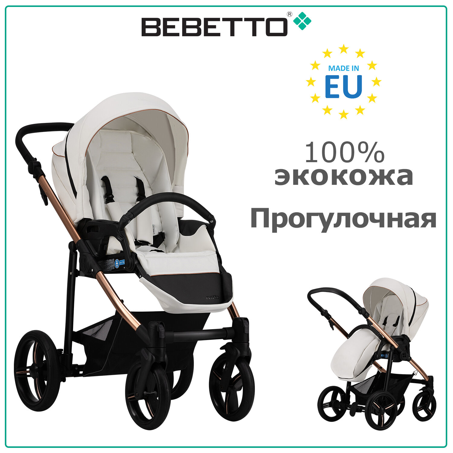 Детская коляска/прогулочная/Bebetto/Nico ESTILO PRO (100% экокожа)/01/рама бронзовая
