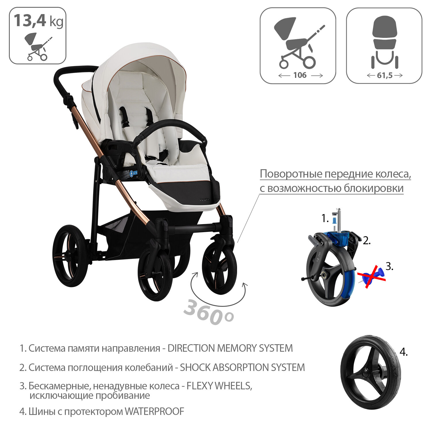 | Аксессуары в комплекте | бампер, дождевик, матрас, накидка на ноги, подстаканник |