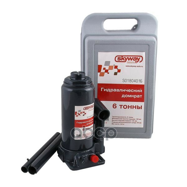 Домкрат гидравлический бутылочный SKYWAY с клапаном в кейсе 6т h 195-380мм, S01804016 интересное: