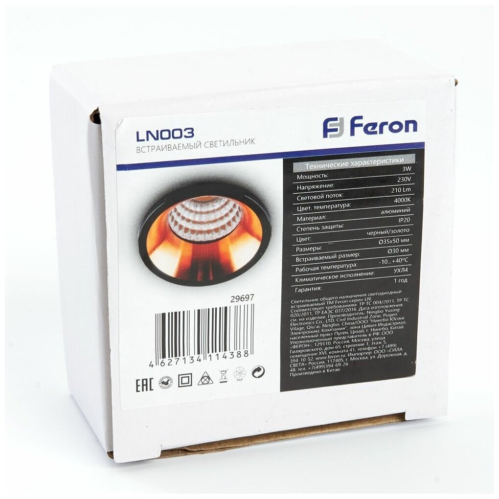Ниже Вы можете прочитать отзывы на Светодиодный светильник Feron LN003 встраиваемый 3W 4000K черный с золотом, ознакомится с подробными характеристиками, посмотреть интересные обзоры и фотографии на Светодиодный светильник Feron LN003 встраиваемый 3W 4000K черный с золотом.