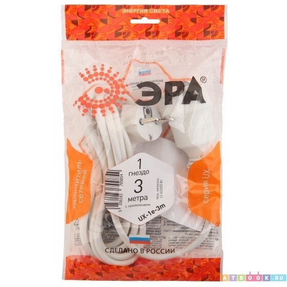 Ниже Вы можете прочитать отзывы на Удлинитель электрический ЭРА UX-1е-3m с заземлением 1 розетка 3м ПВС 3x0,75мм2 10А, ознакомится с подробными характеристиками, посмотреть интересные обзоры и фотографии на Удлинитель электрический ЭРА UX-1е-3m с заземлением 1 розетка 3м ПВС 3x0,75мм2 10А.