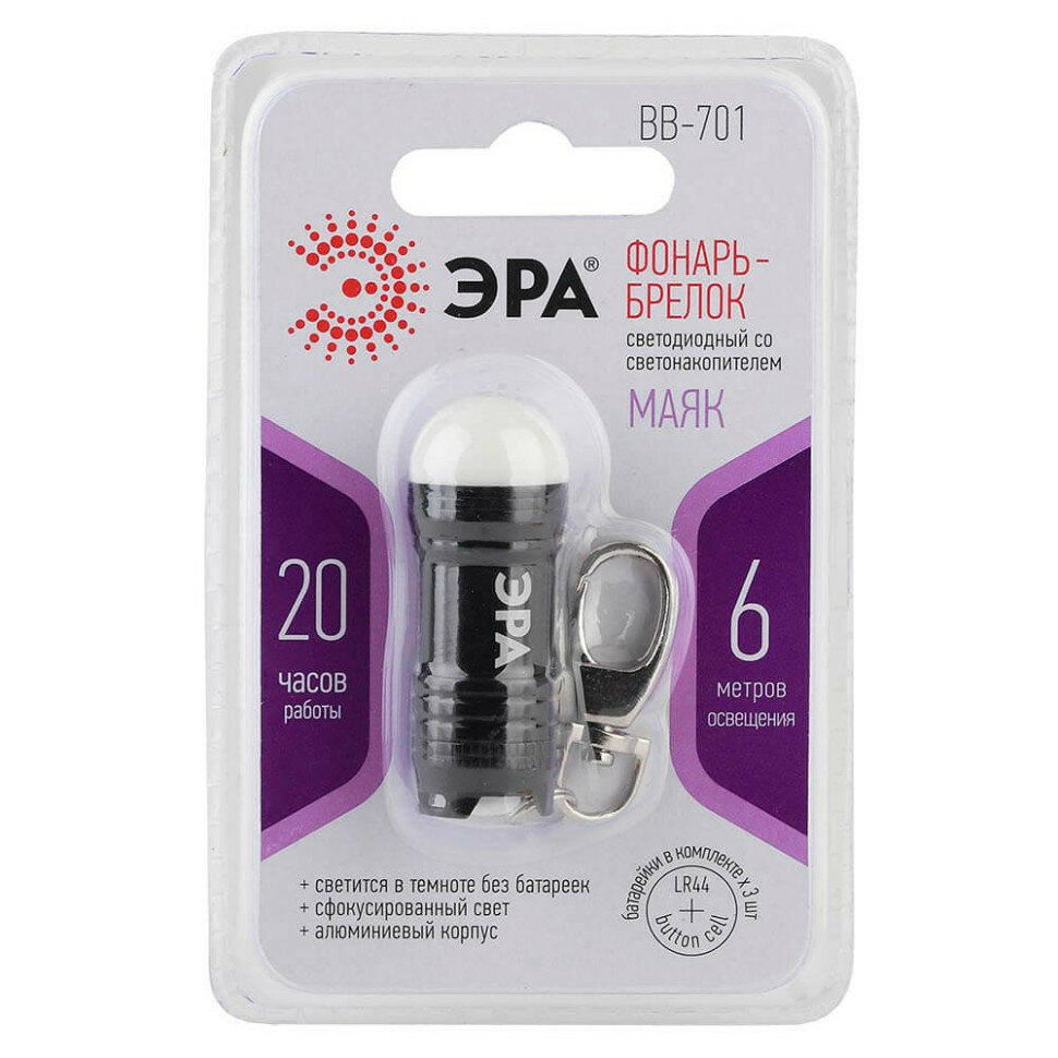 СохранитьФонарь Эра BB-701 брелок [0,5Вт + светонакопитель, алюм, 3xLR44 в ком, бл] (25/100/3200) интересное: