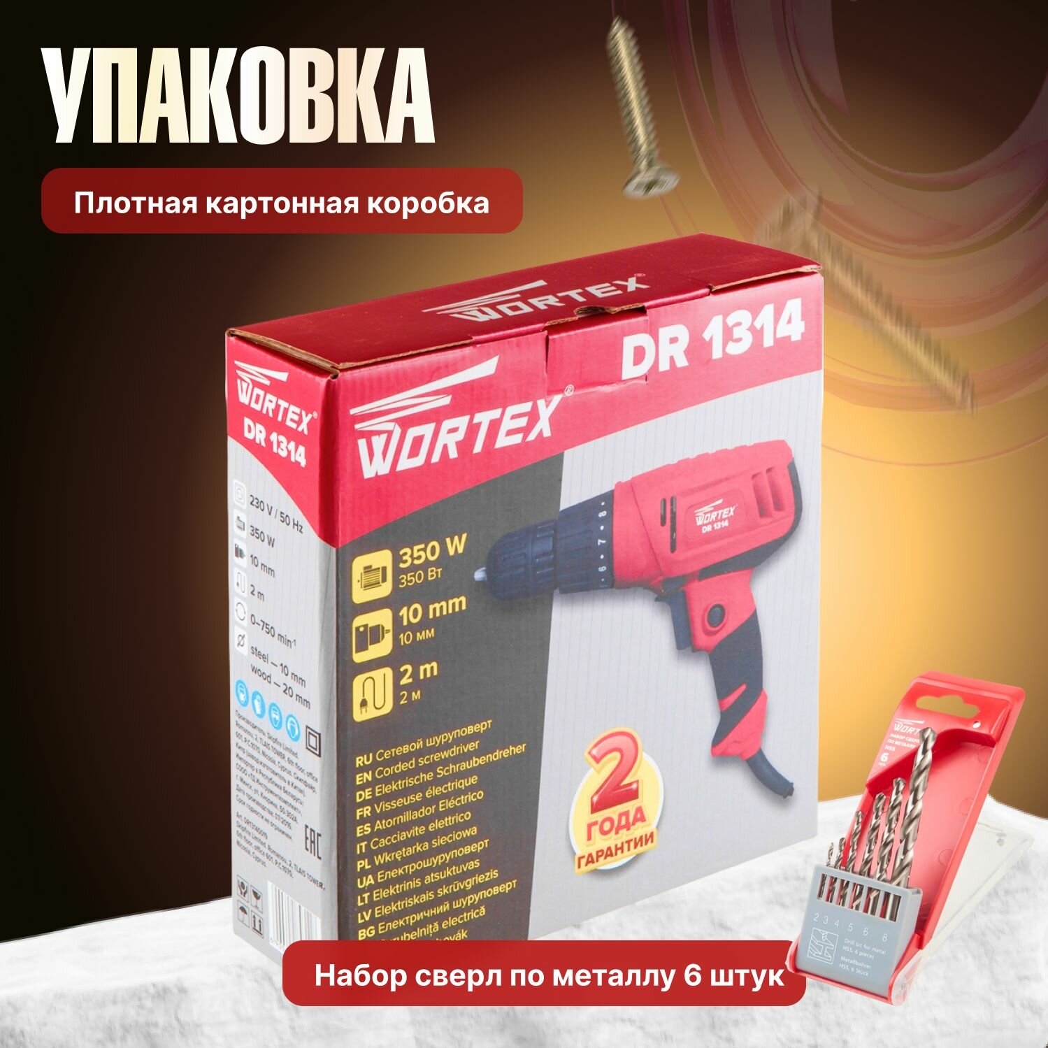 Дрель-шуруповерт WORTEX DR 1314 в кор.+акция (В подарок WDBS2008M10611 Набор сверл по мет. 6шт (2-3-4-5-6-8 мм) HSS WORTEX) (DR13140019А4)