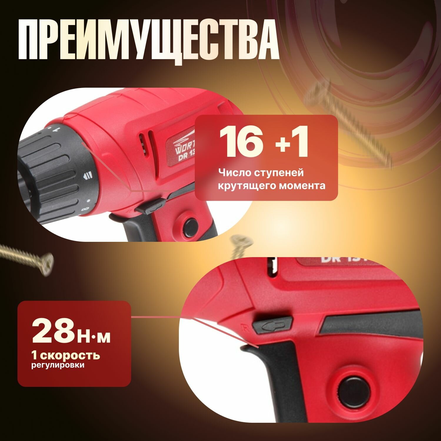 Дрель-шуруповерт WORTEX DR 1314 (DR13140019А4) интересное: