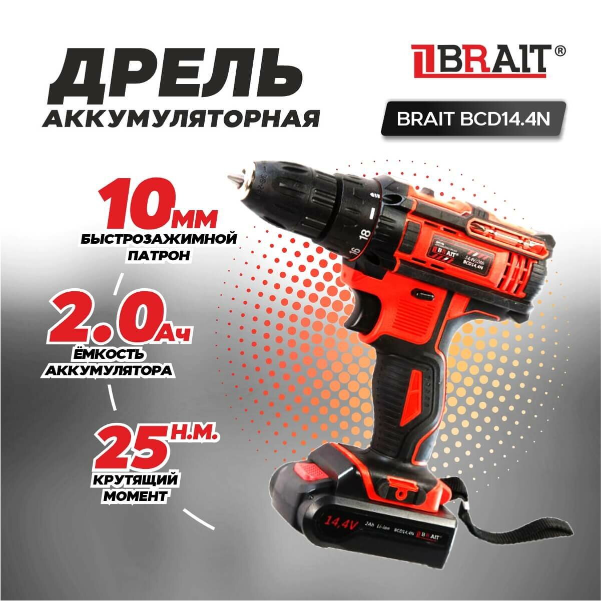 Дрель аккумуляторная BRAIT BCD14.4N интересное: