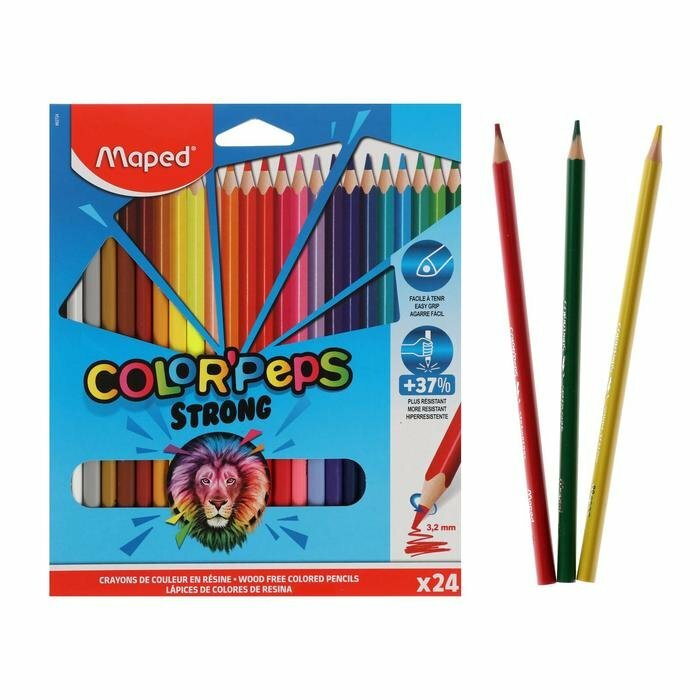 Карандаши цветные MAPED "COLOR PEP'S Strong", набор 24 цвета, грифель 3,2 мм, пластиковый корпус, 862724 181989