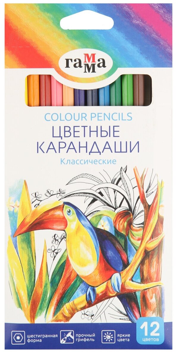 Карандаши цветные гамма "Классические", 12 цветов, заточенные, шестигранные, картонная упаковка, 05091802, 050918_02