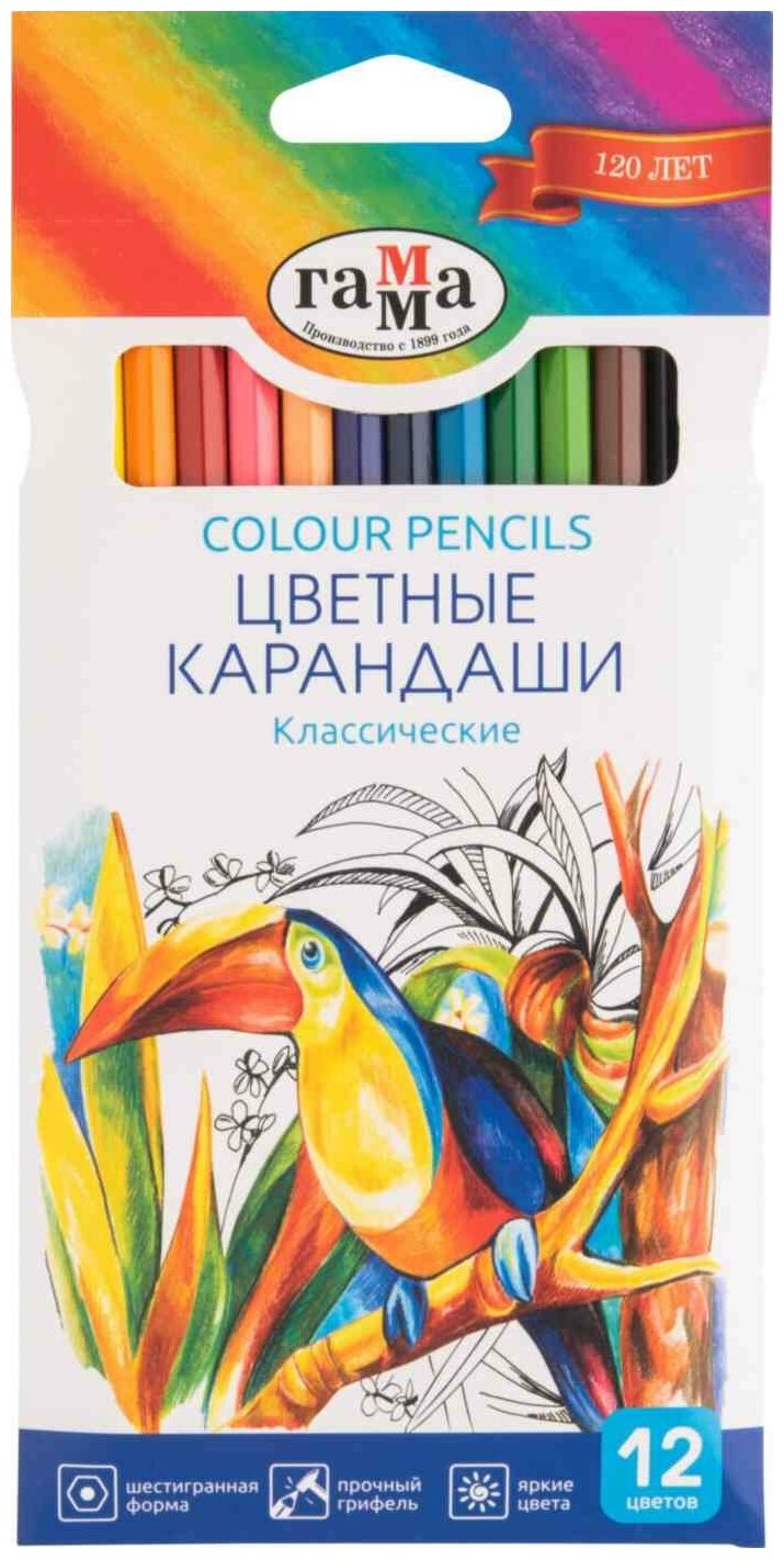 Карандаши цветные Гамма "Классические", 12 цветов, заточенные, шестигранные (050918_02)
