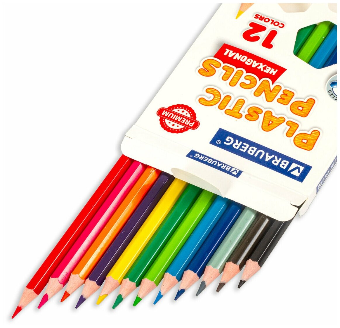 Купить Карандаши цветные BRAUBERG PREMIUM, 12 цветов, пластиковые, шестигранные, грифель мягкий 3 мм, 181666