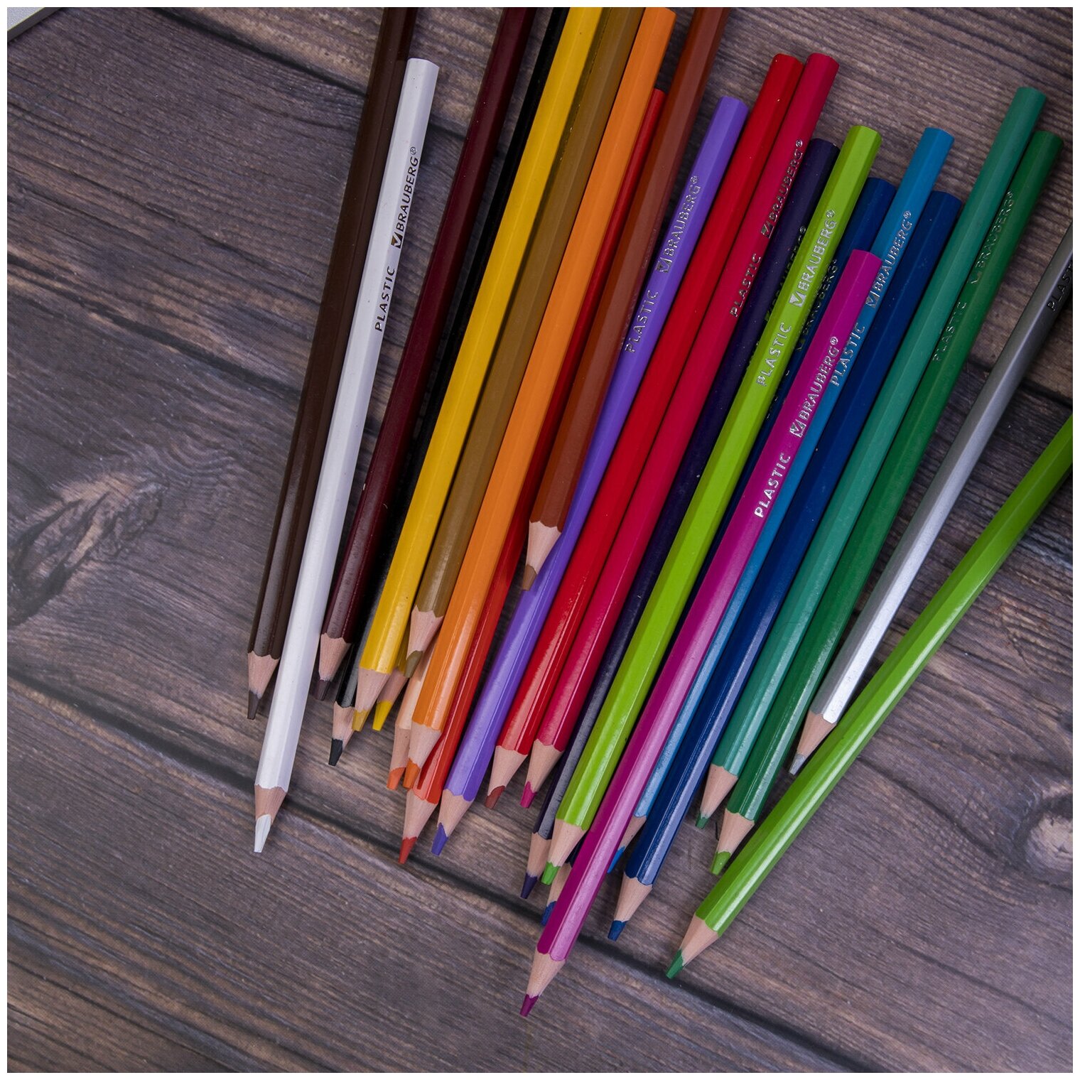 Купить Карандаши цветные пластиковые BRAUBERG PREMIUM, 24 цвета, шестигранные, грифель мягкий 3 мм, 181668