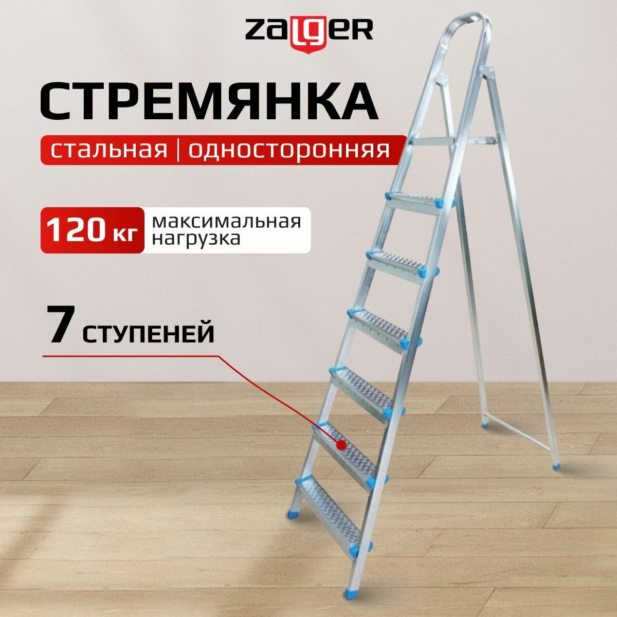 Стремянка Zalger 7 ступени, сталь, до 120 кг (711-7)