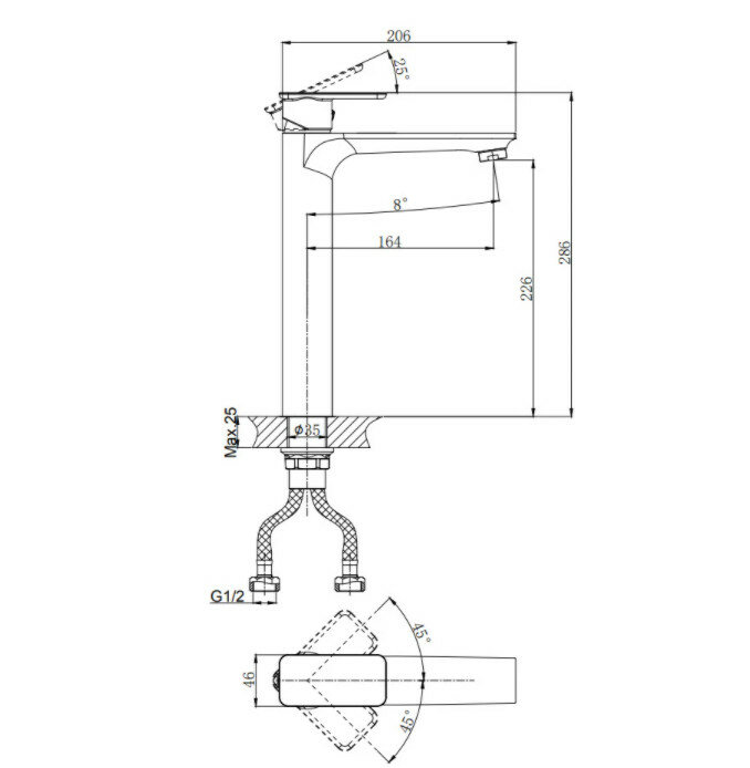 | Длина излива | 164 мм |