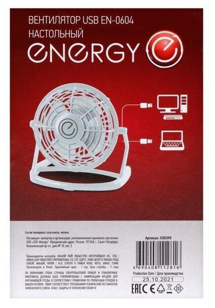 Вентилятор настольный USB EN-0604 белый ENERGY