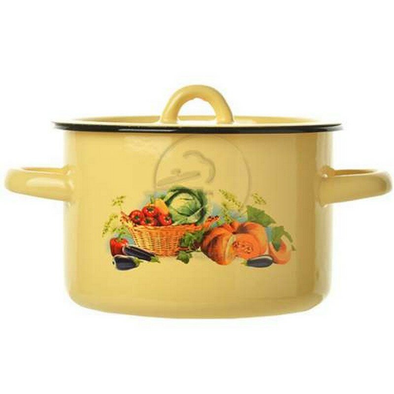 Кастрюля эмалированная с крышкой для индукционной плиты, объем 2 л