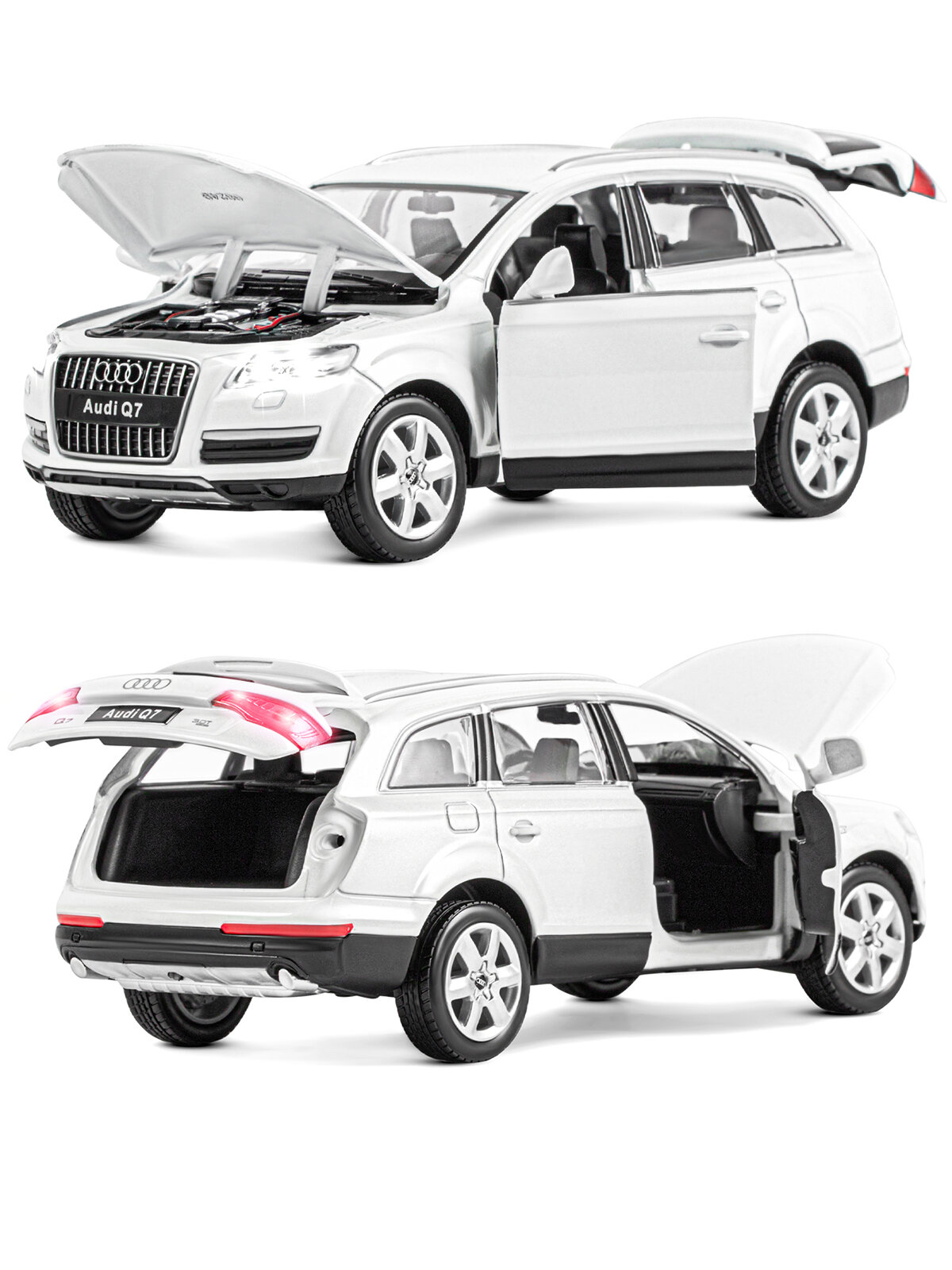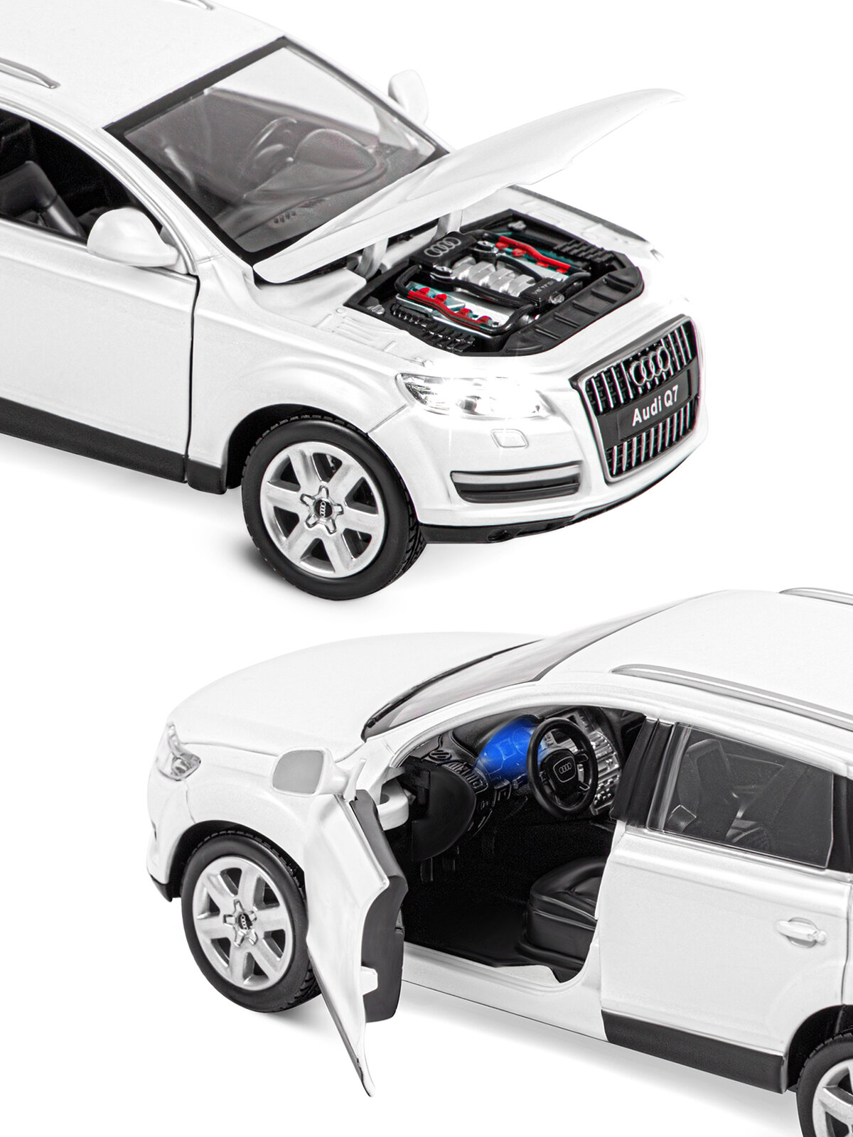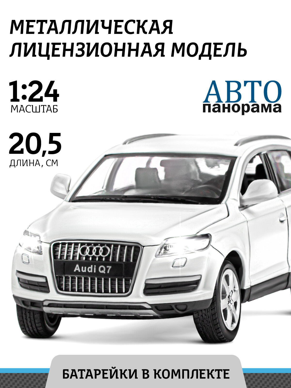 Модель машины Автопанорама 1:24 Audi Q7, белый, свободный ход колес, открываются двери, капот, багажник, свет, звук