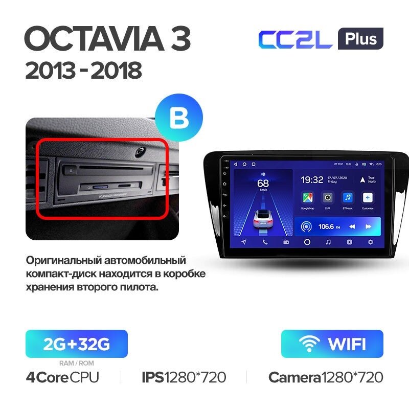 Штатная магнитола Teyes CC2L Plus Skoda Octavia 3 A7 2013-2018 2+32G, Вариант B
