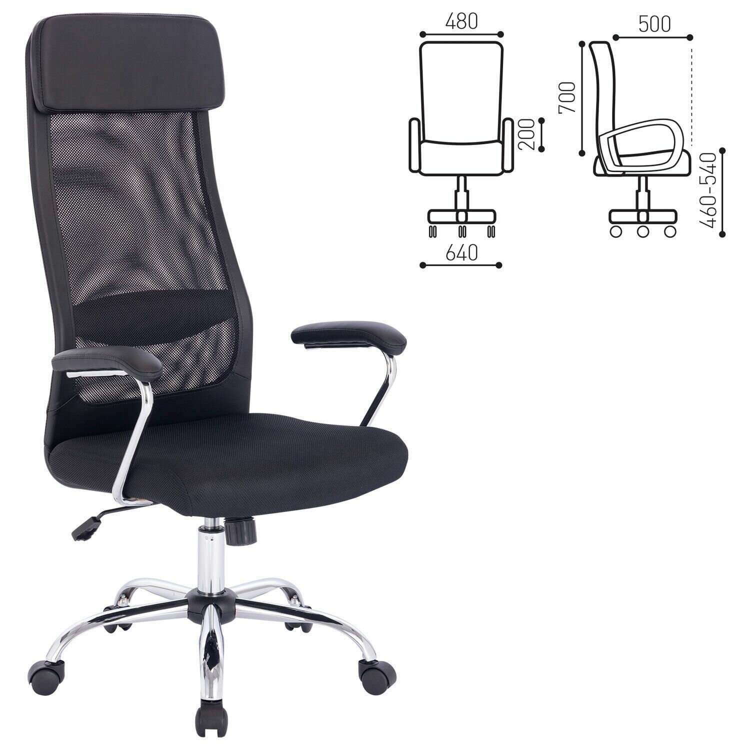 Кресло офисное BRABIX «Flight EX-540», хром, ткань TW, сетка, черное, 532515