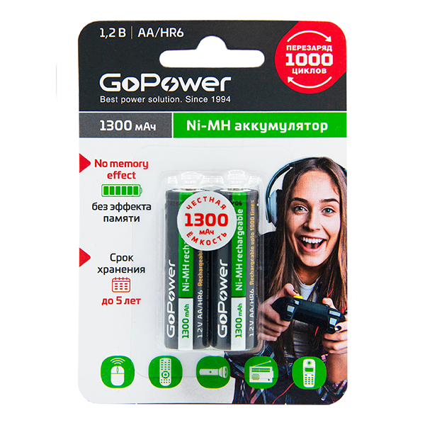 Ниже Вы можете прочитать отзывы на Аккумуляторная батарейка HR6 AA GoPower NI-MH 1300mAh 2шт, ознакомится с подробными характеристиками, посмотреть интересные обзоры и фотографии на Аккумуляторная батарейка HR6 AA GoPower NI-MH 1300mAh 2шт.