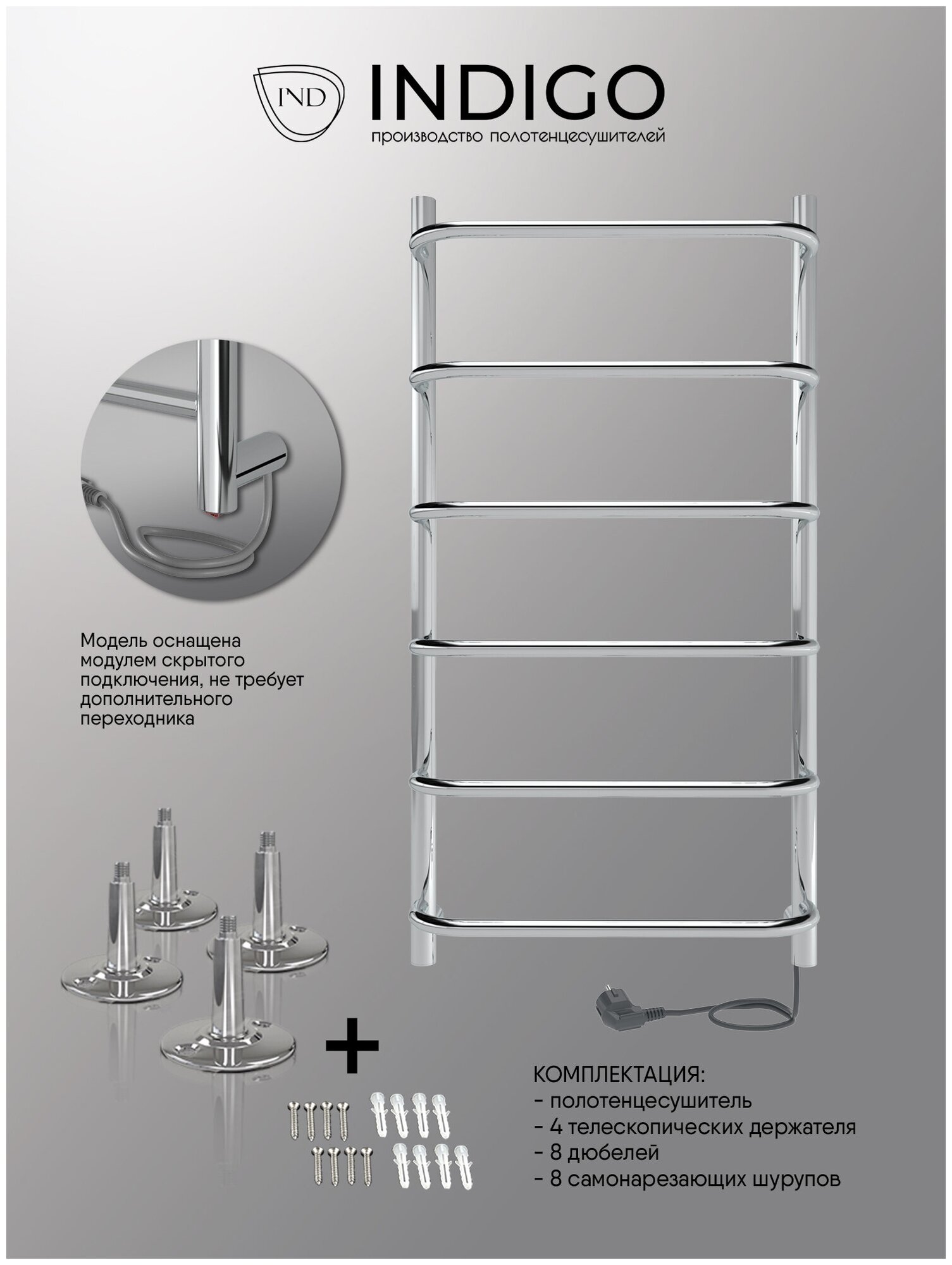 Полотенцесушитель электрический IND (INDIGO) Embrace 80/40 Хром (универсальное подключение, скрытый монтаж)