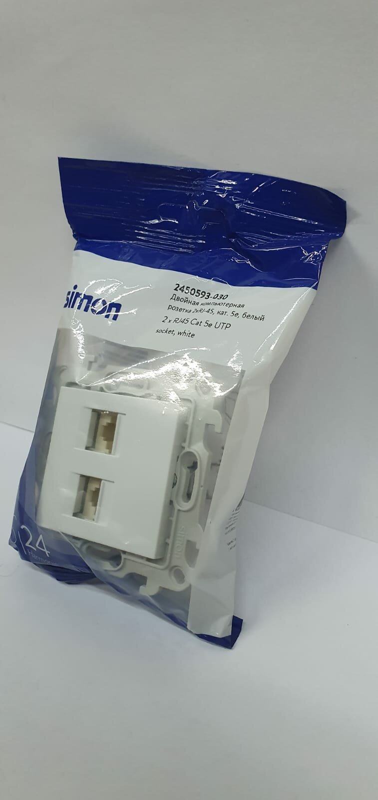 Simon 24 Белая Розетка 2хRJ45 кат. 5е UTP 2450593-030