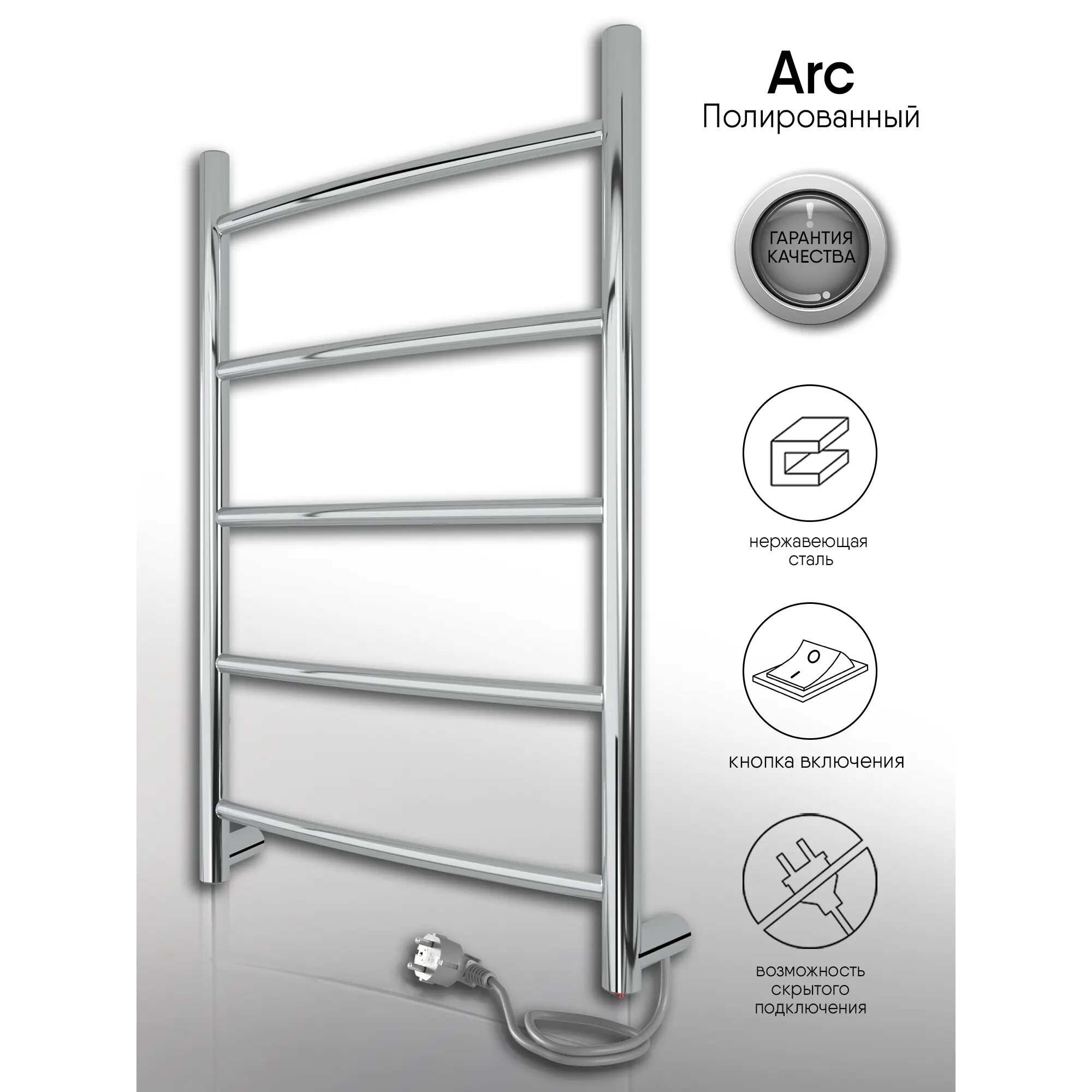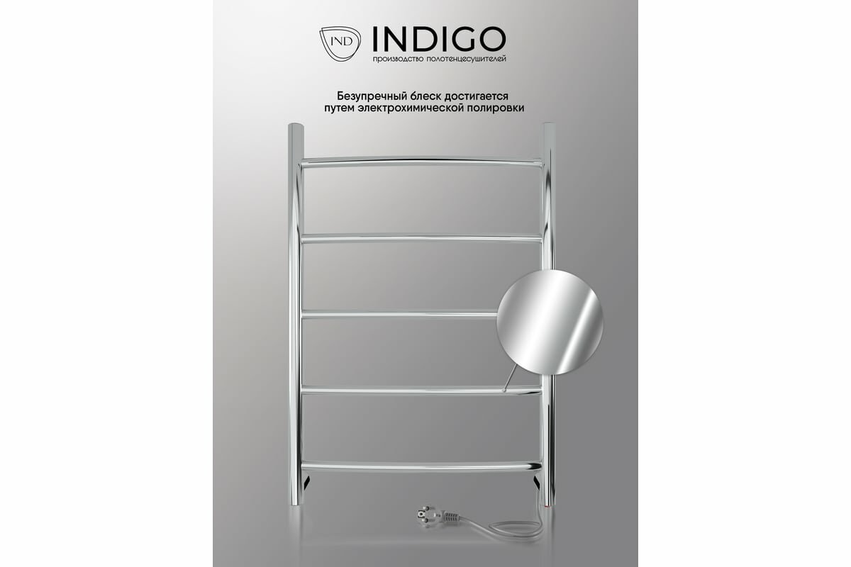 INDIGO Полотенцесушитель Arc б/п (electro) 60/40 (скр.монтаж, унив.подкл.R/L, Полиров.) LCAE60-40R