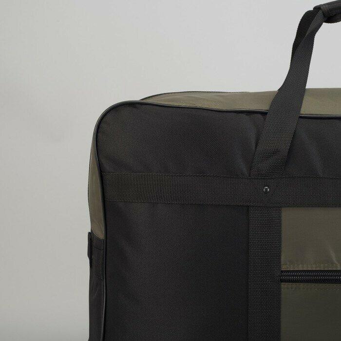 Купить Сумка дорожная на молнии, наружный карман, цвет чёрный/хаки