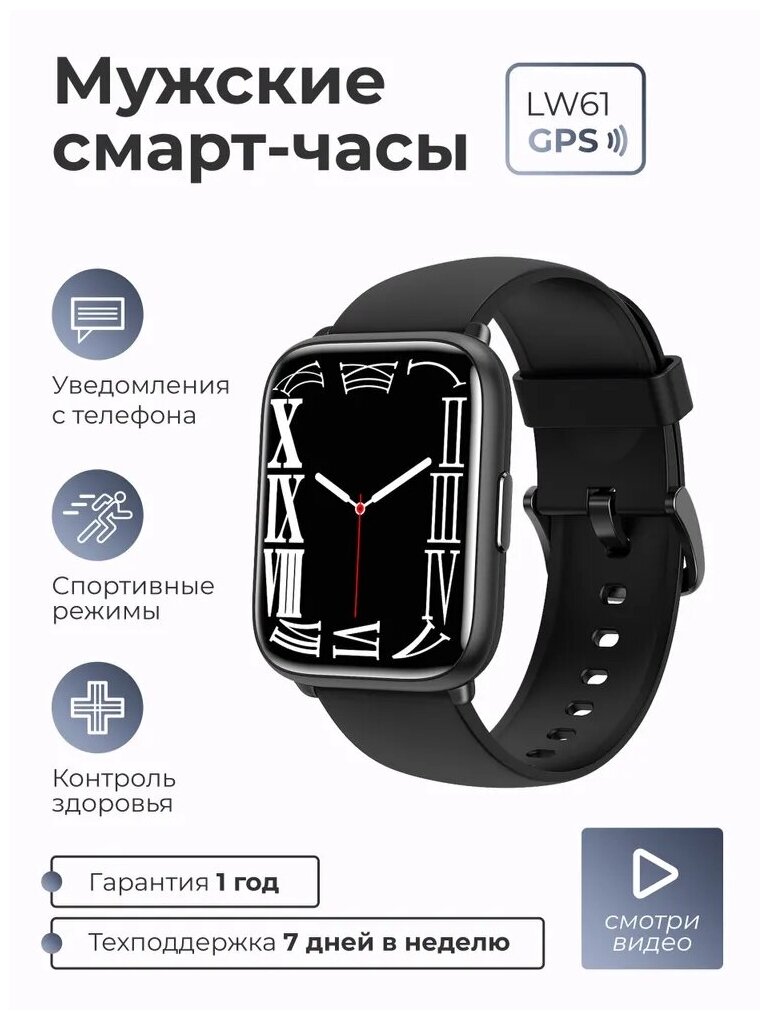 Умные Смарт часы женские и мужские SMART PRESENT LW61 наручные с измерением уровня кислорода в крови и пульса, черные