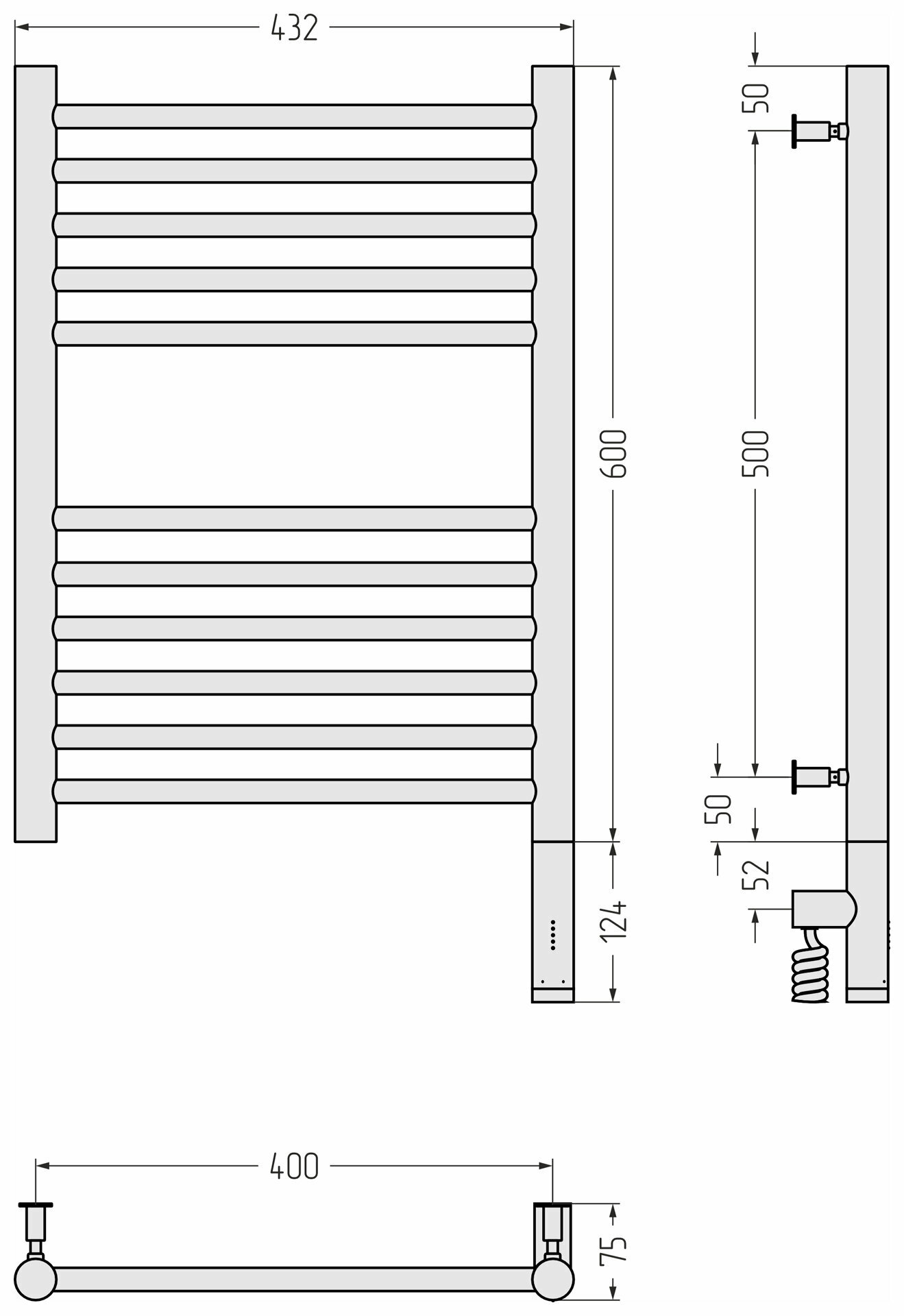 Полотенцесушитель электрический Сунержа Богема 3.0 прямая 600х400 МЭМ правый Сатин