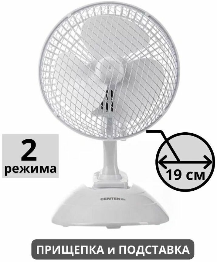 Вентилятор настольный Centek CT-5003 Белый, диаметр 19 см, металлическая решётка, клипса