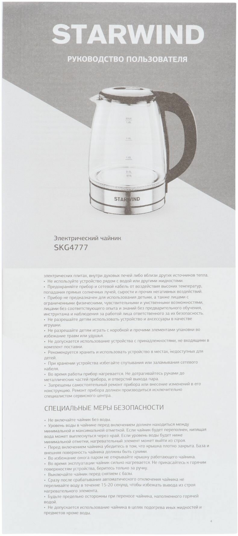 Чайник STARWIND SKG4777 черный/серебристый стекло