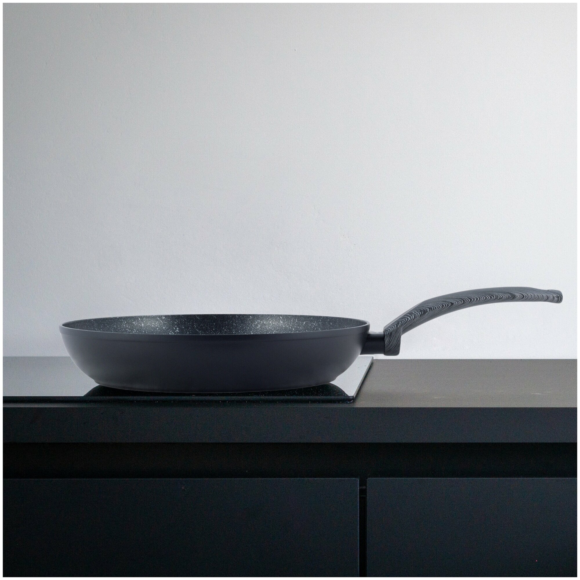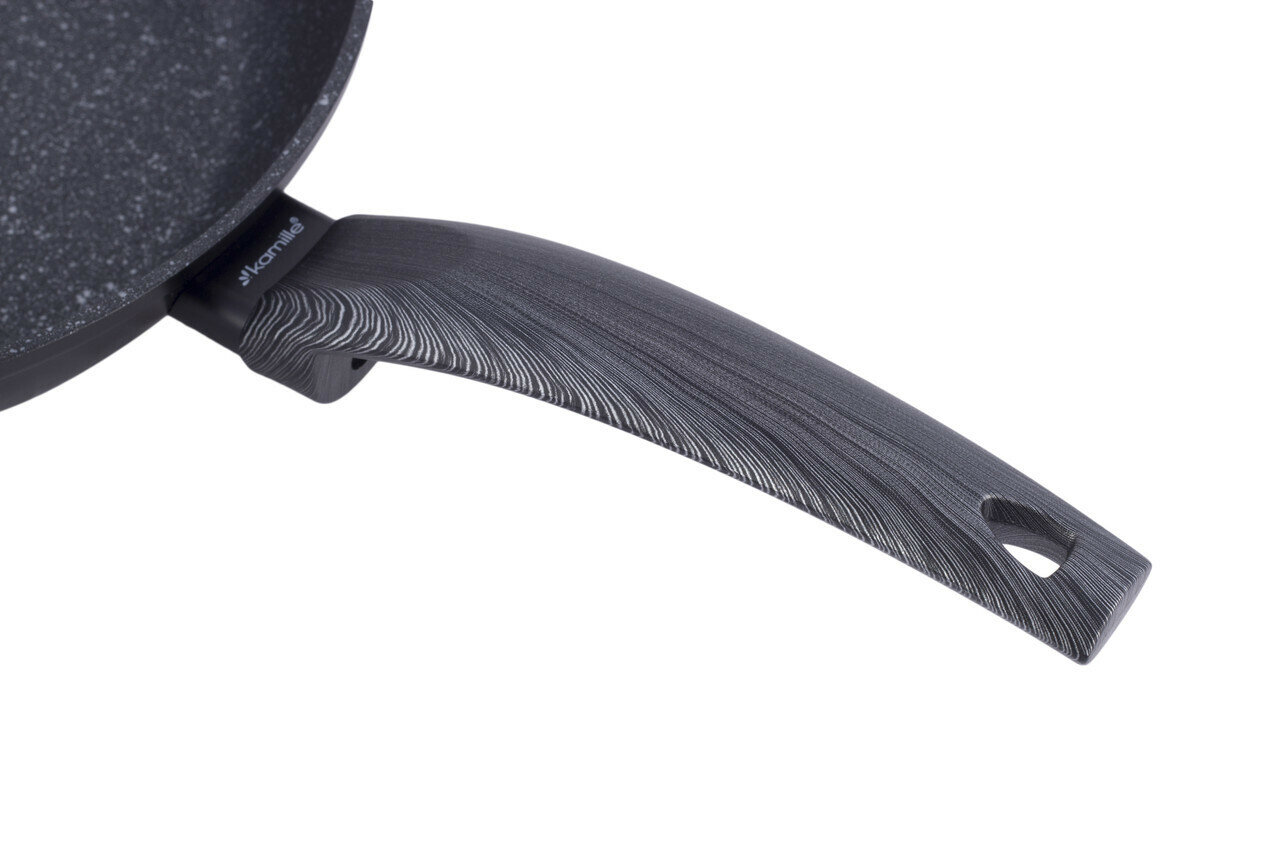 Сковорода 26 см. из кованого алюминия Kamille KM-4130 с антипригарным покрытием PTFE чёрный мрамор (26 см. / черный)