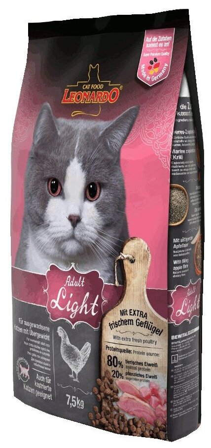 Ниже Вы можете прочитать отзывы на Сухой корм Leonardo Adult Light для стерилизованных и имеющих избыточный вес кошек - 7,5 кг, ознакомится с подробными характеристиками, посмотреть интересные обзоры и фотографии на Сухой корм Leonardo Adult Light для стерилизованных и имеющих избыточный вес кошек - 7,5 кг.