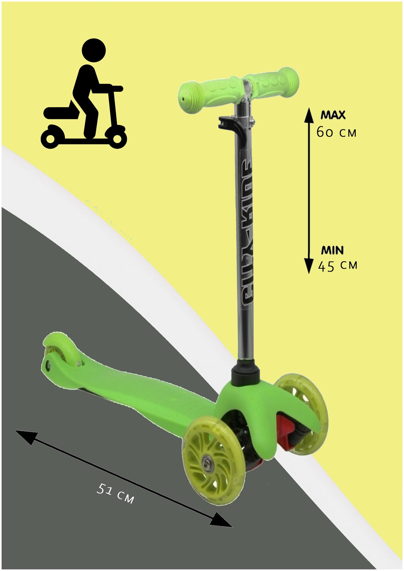 Купить Самокат детский трехколесный ТМ City-Ride, колеса PU 110/76, светодиоды на колесах, зеленый, CR-S4-02GR