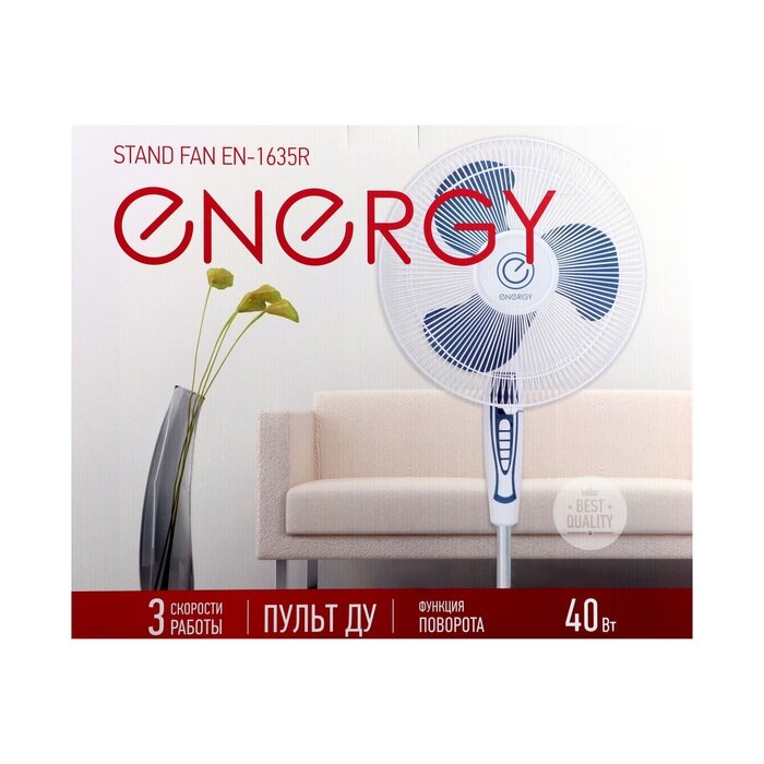 Вентилятор напольный Energy EN-1635R, диаметр 16, 1,25см, 3 лопасти, с пультом, 40Вт