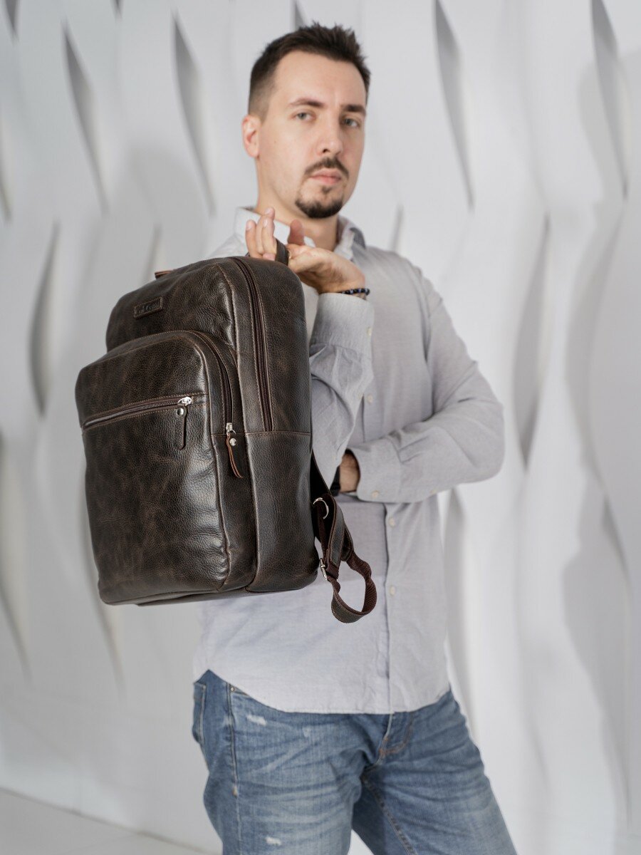 Вместительный кожаный рюкзак для ноутбука Carlo Gattini 3017-04