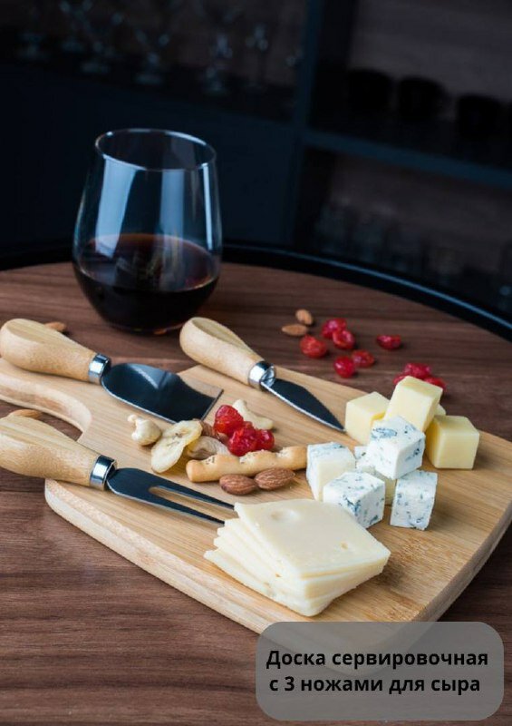 Сама доска и остальное сделаны также аккуратно. Красивая доска, можно использовать и отдельно. Сырные принадлежности не все жизненно необходимые, но настроение создают. |