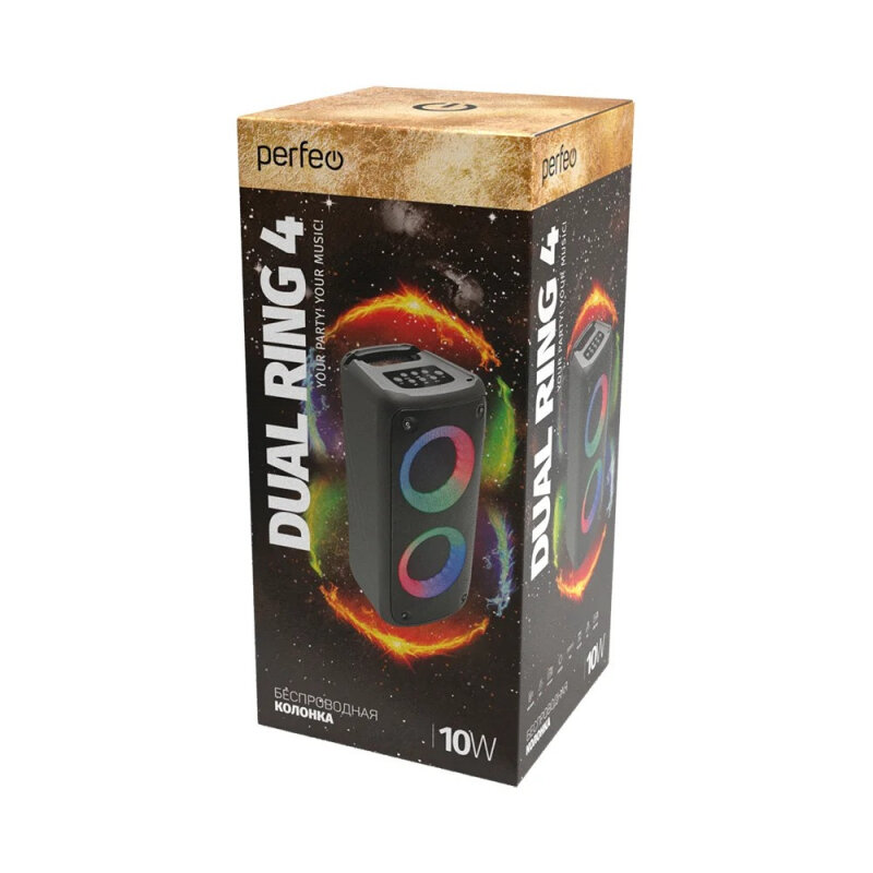 Perfeo Bluetooth-колонка "DUAL RING" 4" LED, FM, MP3 USB/microSD, AUX, TWS, MIC, 10Вт, черная