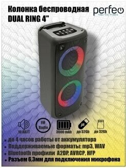 Беспроводная колонка PERFEO Dual Ring 4 интересное: