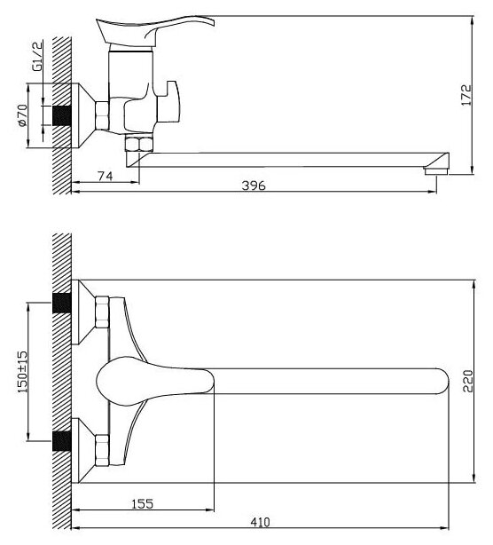 | Длина излива | 396 мм |