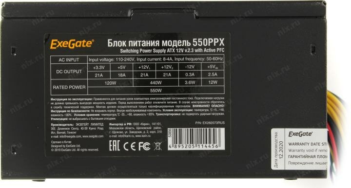 Блок питания ExeGate 550PPX 550W (EX282073RUS)