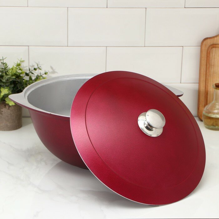 Купить Казан, 7 л, алюминиевая крышка, литые ручки, цвет бордовый